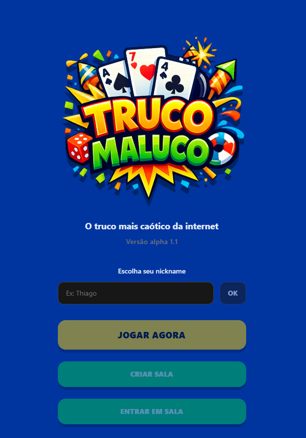 Truco Maluco é um jogo web multiplayer baseado no clássico truco brasileiro, com uma proposta caótica e dinâmica que mistura regras tradicionais com mecânicas extras como poderes e modos aleatórios.